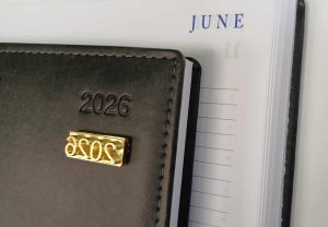 A brass deep etched die, which we utilised our ‘Impress’ hand machine for these desk diaries.