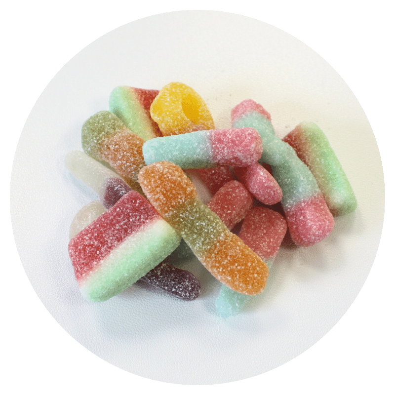 We can offer a wide range of flavours including Jelly Beans, Wine Gums, Midget Gems, Fizzy Mix, Jelly Babies, Fizzy Cola Bottles, Fruit Pastilles, Rosy Apples, Sour Dummies & Super Sour Mix.